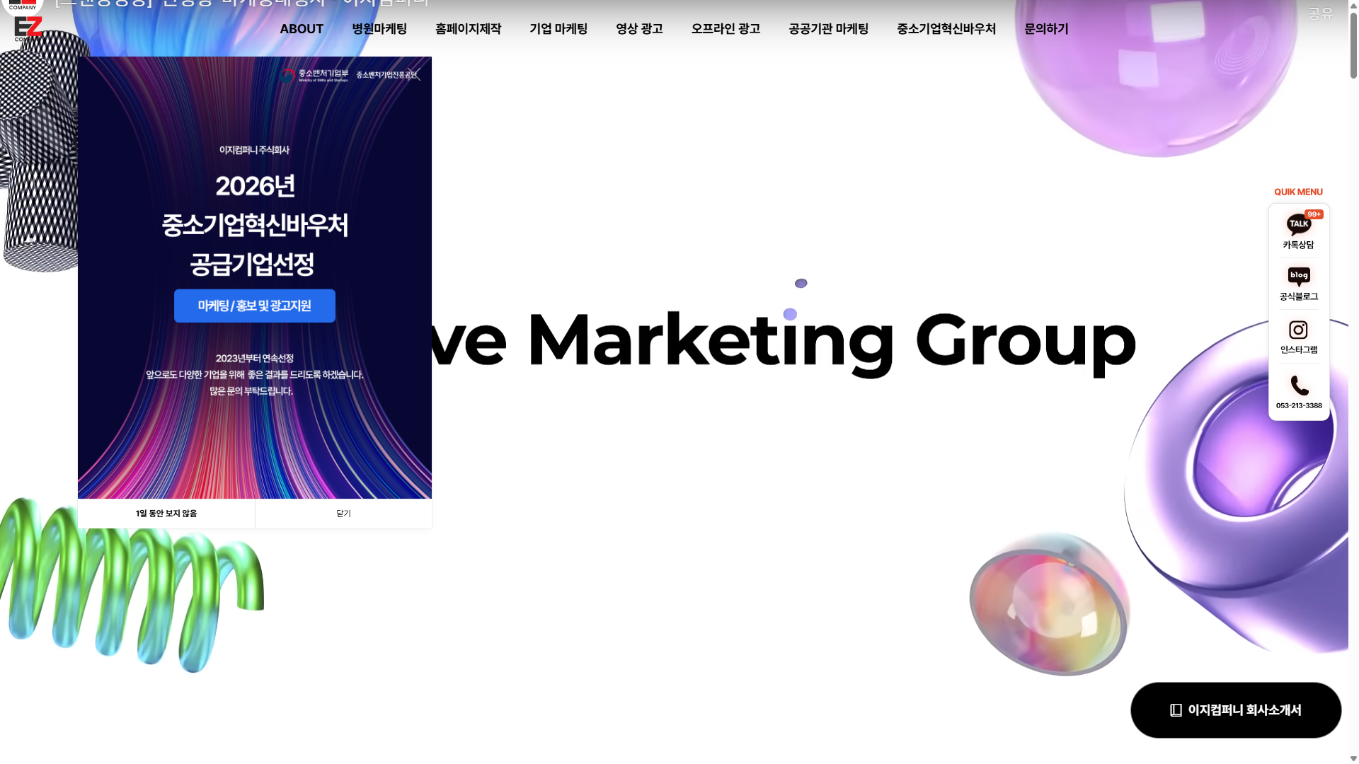 홈>광고 대행>이지컴퍼니 주식회사 (EZ company)이지컴퍼니 주식회사 (EZ company)⭐ 0(0개 리뷰)|조회 17종합광고대행사 이지컴퍼니카테고리광고 대행공식 파트너Google 파트너스웹사이트http://www.creative-ez.com/🔖 북마크✏️ 리뷰 작성서비스 소개리뷰 (0)연락처서비스 설명이지컴퍼니는 대구에 위치한 종합광고대행사입니다. 온라인마케팅, SNS마케팅, 블로그마케팅, 병원마케팅, 중소기업혁신바우처, 홈페이지 제작 외 모든 방면에서 대행이 가능합니다.같은 카테고리의 다른 업체