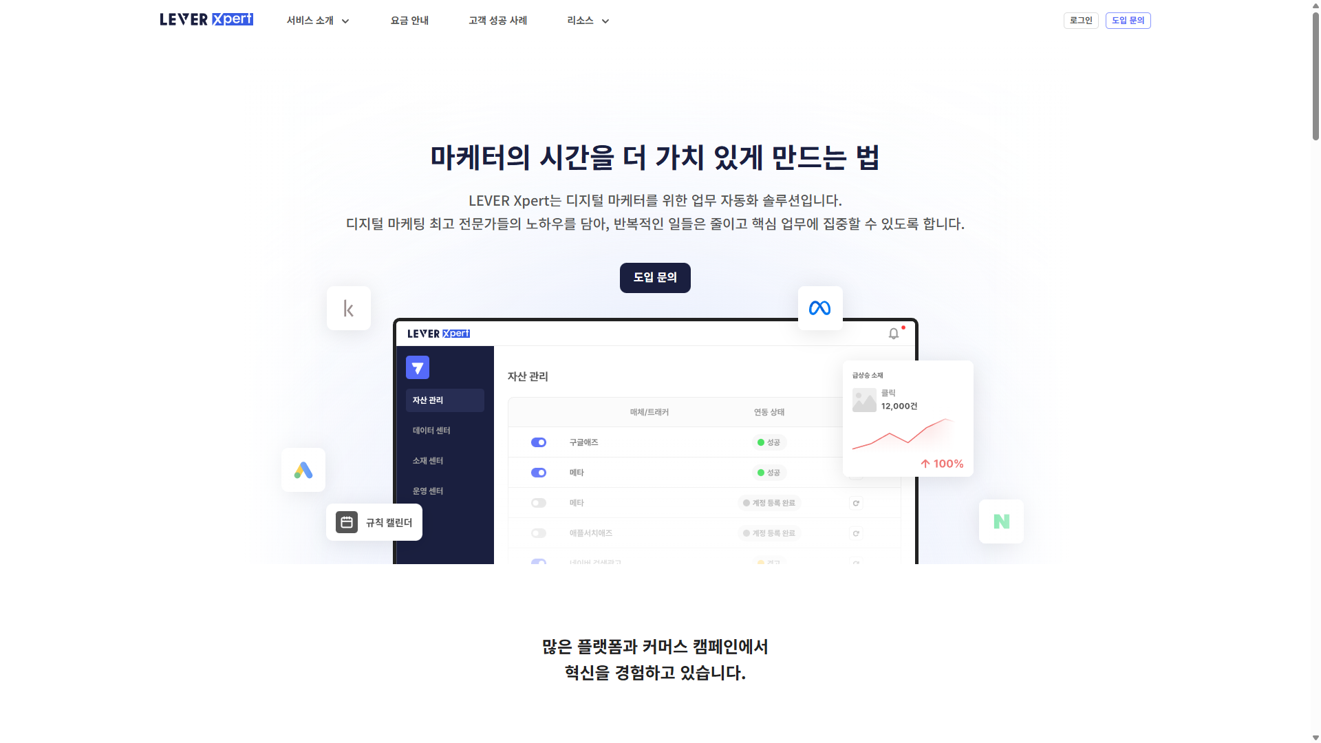 홈>광고 대행>MADUP_LEVERMADUP_LEVER⭐ 0(0개 리뷰)|조회 13디지털 마케팅 솔루션, LEVER Xpert카테고리광고 대행공식 파트너Google 파트너스웹사이트https://www.lever.me/🔖 북마크✏️ 리뷰 작성서비스 소개리뷰 (0)연락처서비스 설명마케터의 시간을 더 가치 있게 만드는 법 전문가의 노하우를 담은 마케팅 업무 자동화 솔루션같은 카테고리의 다른 업체