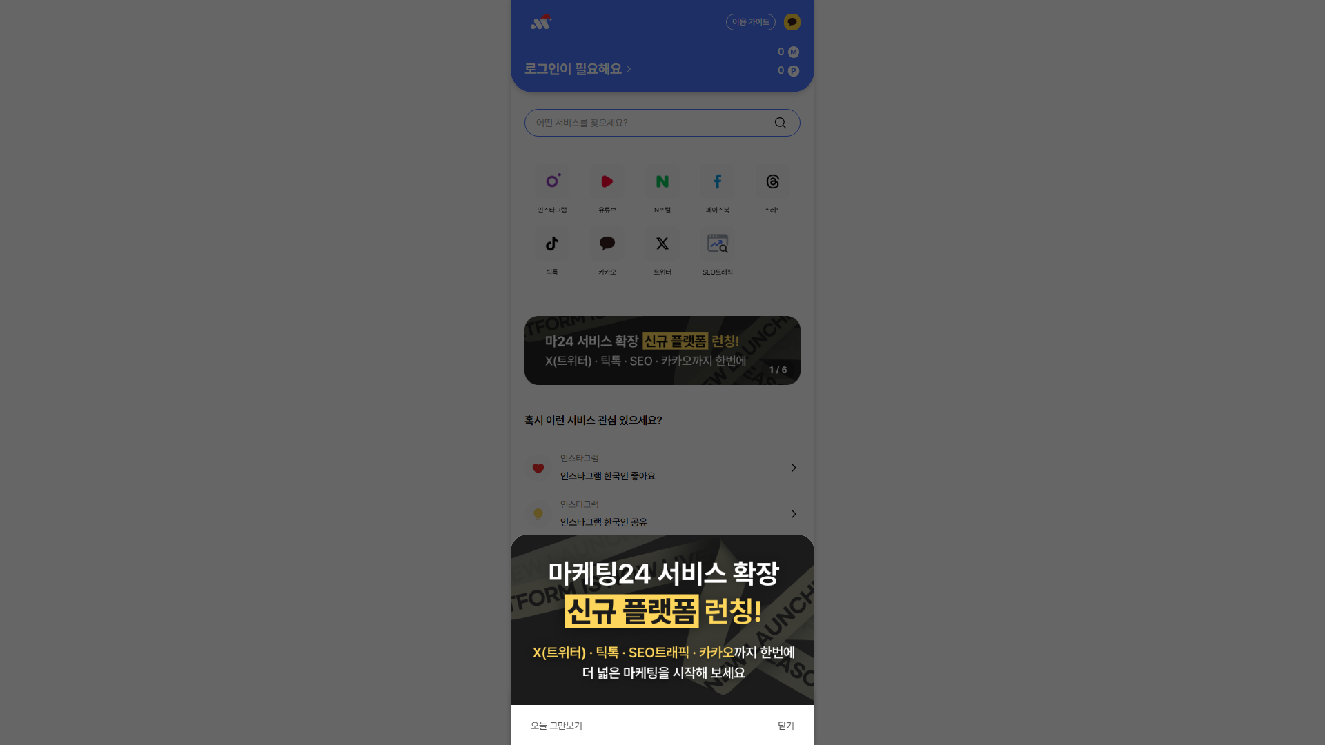홈>SNS 마케팅>마케팅24마케팅24⭐ 0(0개 리뷰)|조회 18마케팅24카테고리SNS 마케팅웹사이트https://mkt24.co.kr/🔖 북마크✏️ 리뷰 작성서비스 소개리뷰 (0)연락처서비스 설명마케팅24는 인스타·SNS 마케팅을 데이터로 설계해 팔로워와 매출을 함께 올리는 서비스입니다. 소상공인·자영업자 인스타 계정을 진단하고 광고·콘텐츠·운영을 통합 관리하는 SNS 마케팅 파트너입니다.같은 카테고리의 다른 업체