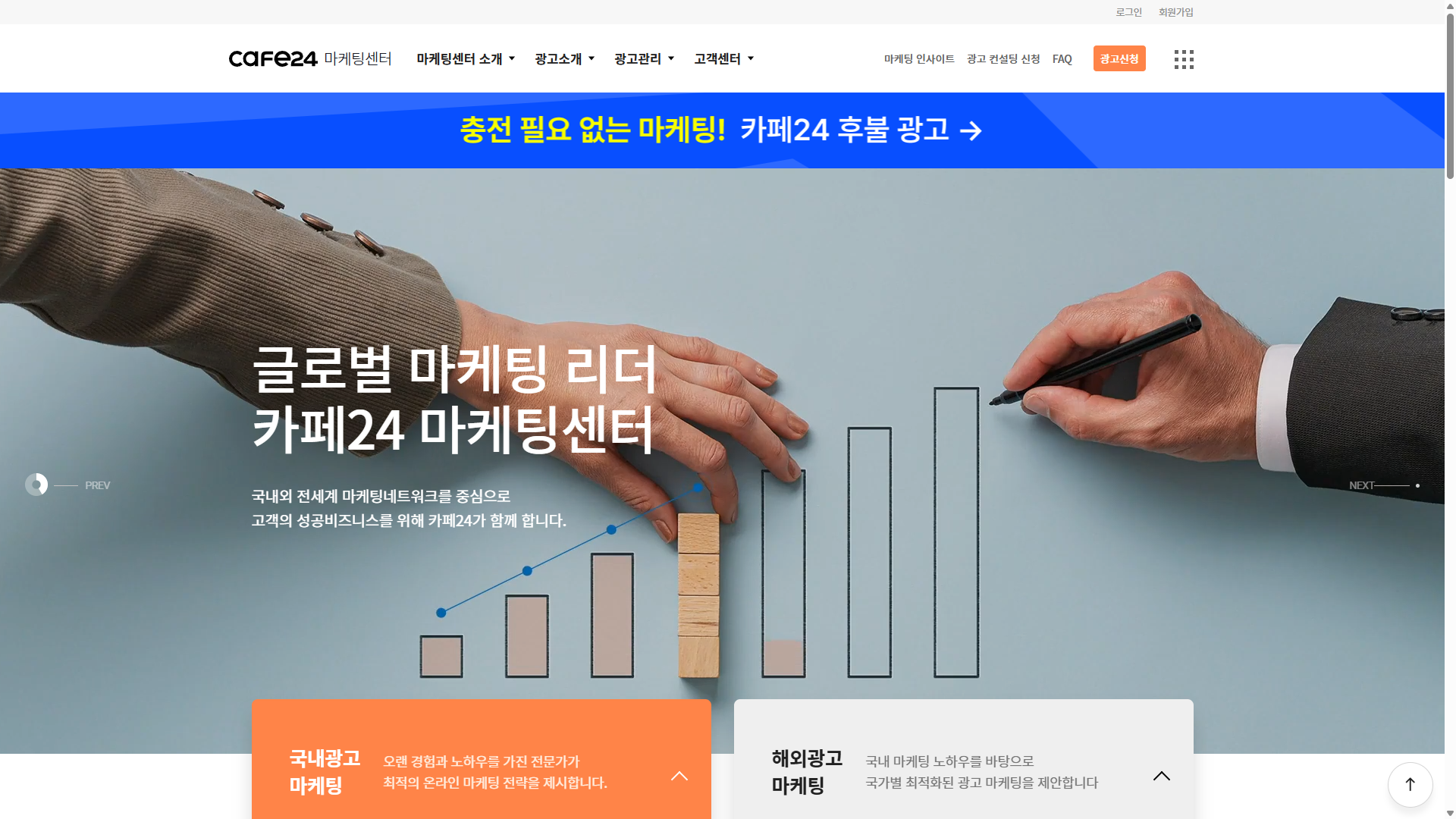 홈>광고 대행>카페24카페24⭐ 0(0개 리뷰)|조회 16비즈니스 성공의 시작 카페24 마케팅센터카테고리광고 대행공식 파트너META 비즈니스 파트너Google 파트너스웹사이트https://cmc.cafe24.com/🔖 북마크✏️ 리뷰 작성서비스 소개리뷰 (0)연락처서비스 설명글로벌 마케팅 네트워크를 중심으로 국내외 전문가그룹이 최적의 온라인 마케팅 전략과 1:1 맞춤 운영서비스를 제공같은 카테고리의 다른 업체