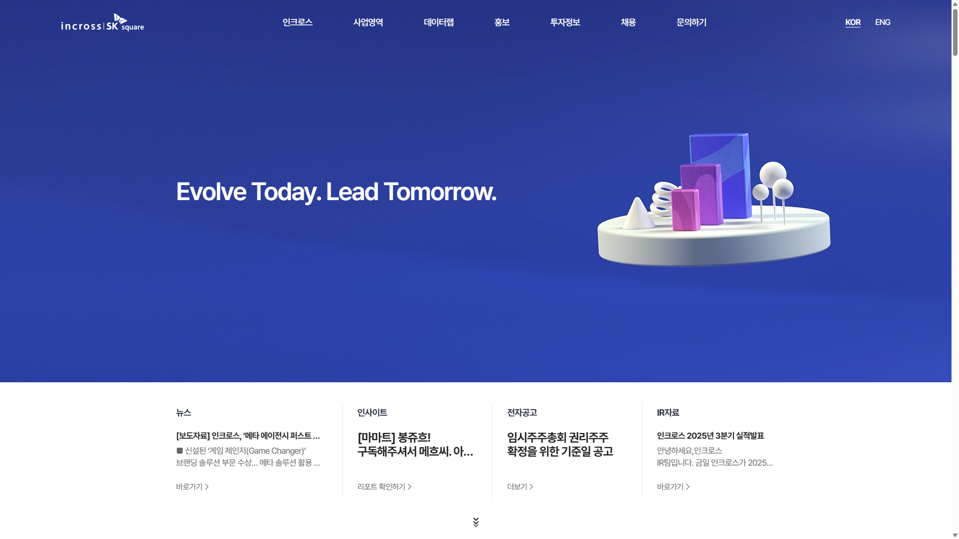 홈>광고 대행>인크로스인크로스⭐ 0(0개 리뷰)|조회 25인크로스카테고리광고 대행공식 파트너META 비즈니스 파트너웹사이트https://www.incross.com/ko/🔖 북마크✏️ 리뷰 작성서비스 소개리뷰 (0)연락처서비스 설명디지털 광고 전문 기업. 미디어렙, 퍼포먼스 마케팅, 커머스 운영, AI PPL 플랫폼 스텔라이즈 등 사업 안내.같은 카테고리의 다른 업체